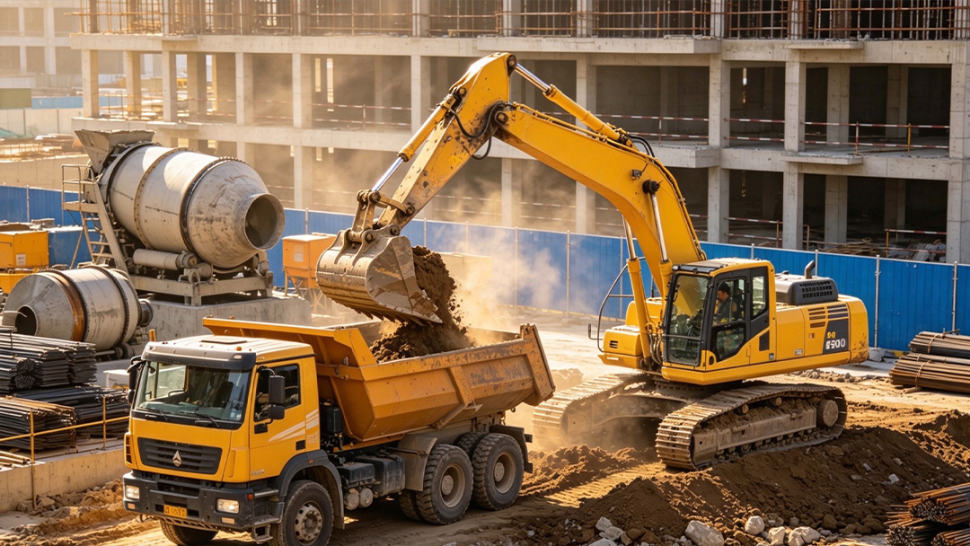 Excavators perform ground grading, trench digging, roadbed excavation and debris clearing in highway and urban road construction.